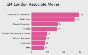 Corporate & Commercial once again led the market with 148 Associate moves, followed closely by Real Estate (135) and Dispute Resolution (84). Finance also recorded solid activity, alongside steady movement across Private Client, HR (to include Employment), Insurance and TMT. Overall, Q4 provided a resilient and positive close to the year.